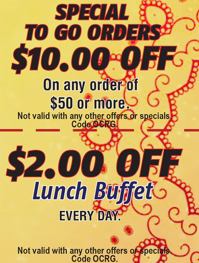 India Gate 2512 Walnut Ave #5, Tustin Call for Reservations/Ordering (714) 730-8996 Go to our Website ORDER INDIA GATE ONLINE Just show your coupon to your server and $AVE!