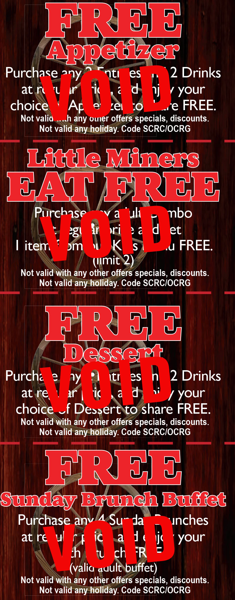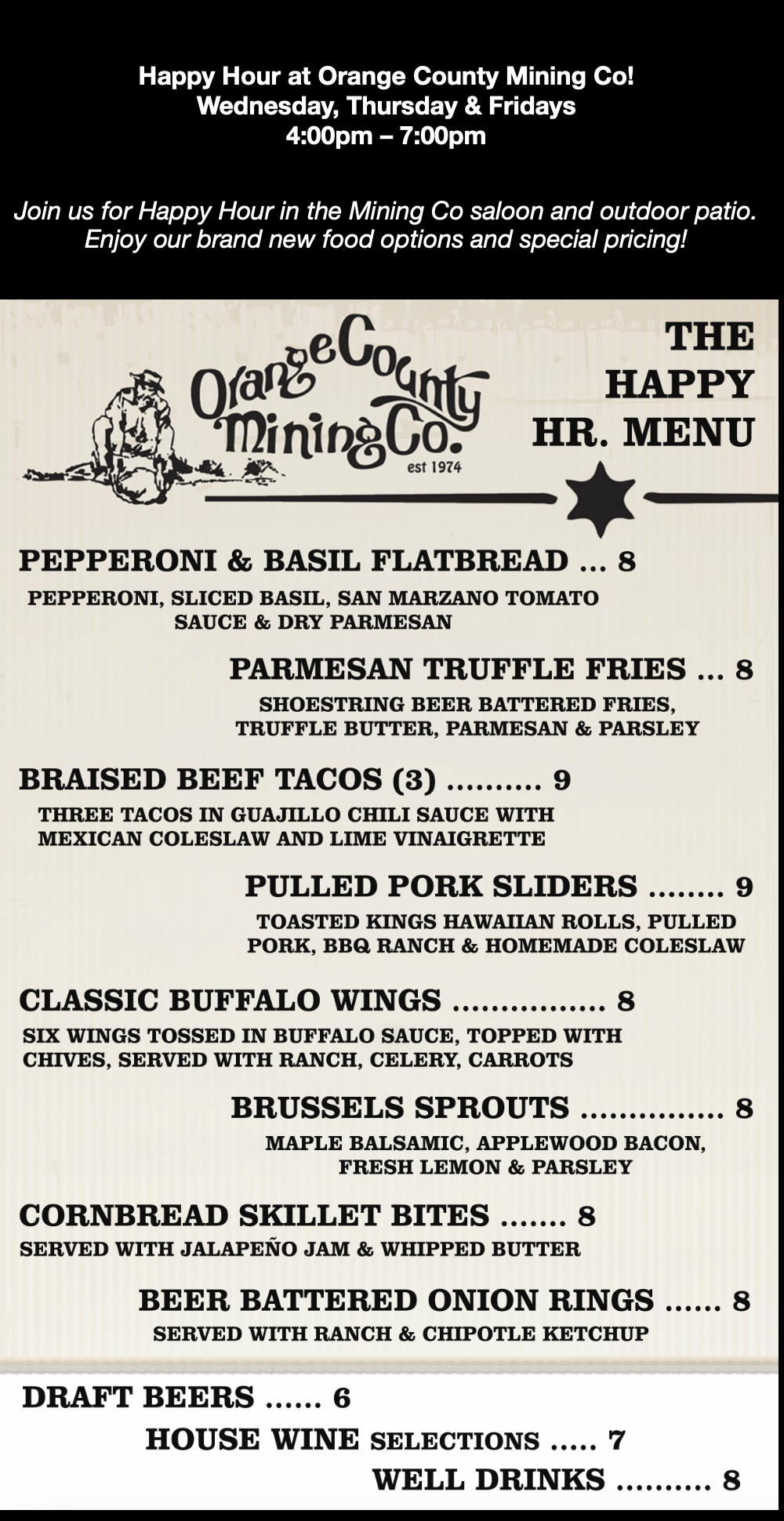 Orange County Mining Co 10000 Crawford Canyon Rd, Orange Call for Reservations/Ordering (714)997-7411 Go to our Website RESERVATIONS Just show your coupon to your server and $AVE!