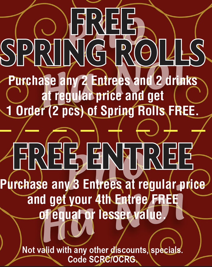 Pho Ha Noi IRVINEClick to call 949-401-063414021 Jeffrey Rd LAKE FORRESTClick to call 949-855-430023624 El Toro Rd Just show your coupon to your server and $AVE!