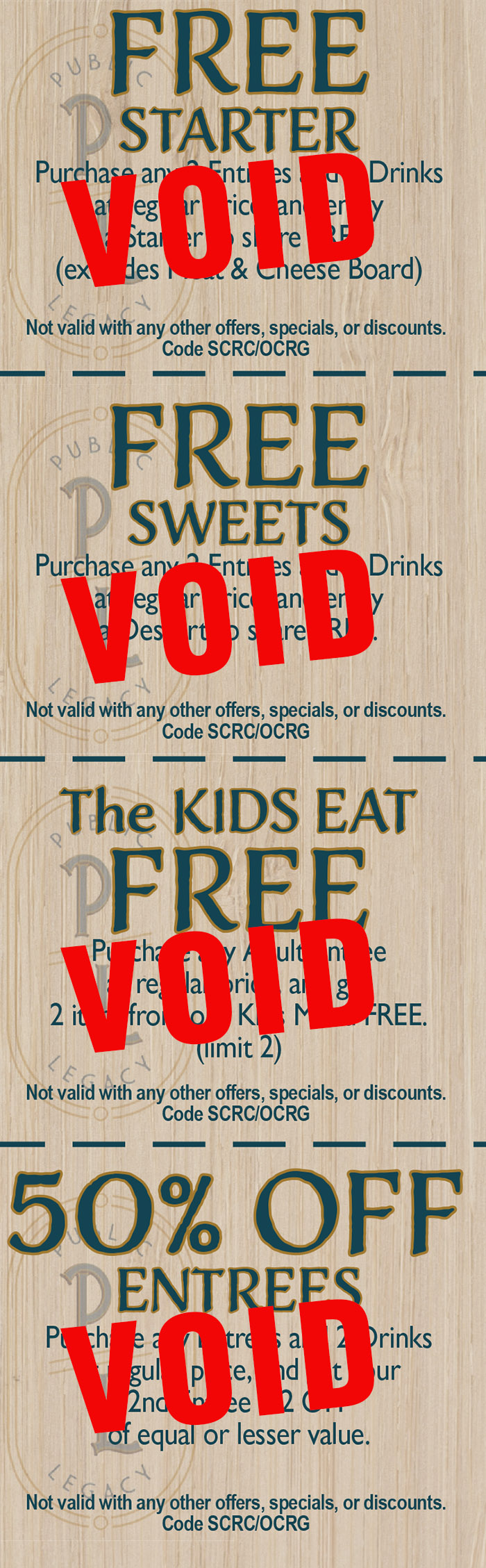 Public Legacy https://static.spotapps.co/website_videos/Public_Legacy_Vimeo720p30.mp4 1547 W. Katella Ave, 102, Orange Call for Reservations/Ordering (657) 598-2450 Go to our Website ORDER PUBLIC LEGACY ONLINE EVENTS - WHISKEY/BOURBON DINNERS SPECIALS Just show your coupon to your server and $AVE!