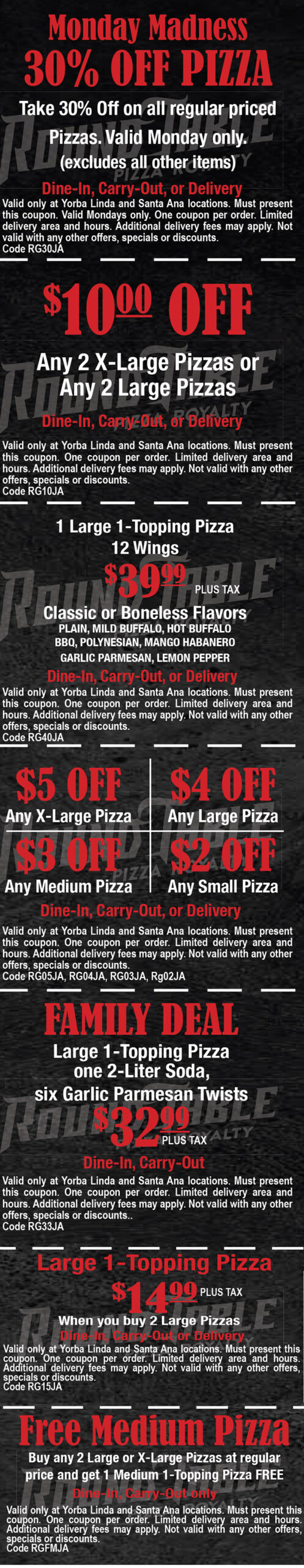 Round Table Santa Ana 1212 East 17th Street, Santa Ana Call for Reservations/Ordering (714) 542-6111 Visit our Website ORDER ROUND TABLE ONLINE Just show your coupon to your server and $AVE!