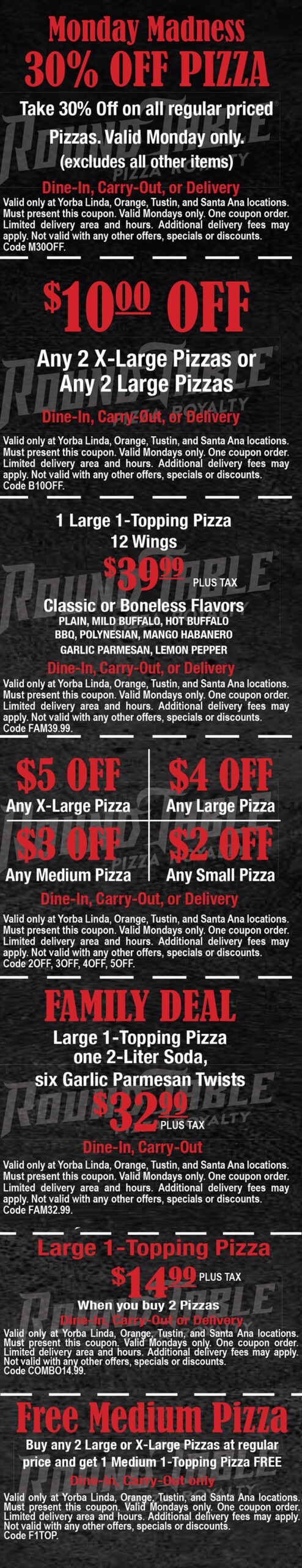 Round Table Yorba Linda 18518 Yorba Linda Blvd, Yorba Linda Call for Reservations/Ordering (714) 970-9295 Visit our Website ORDER ROUND TABLE ONLINE Just show your coupon to your server and $AVE!