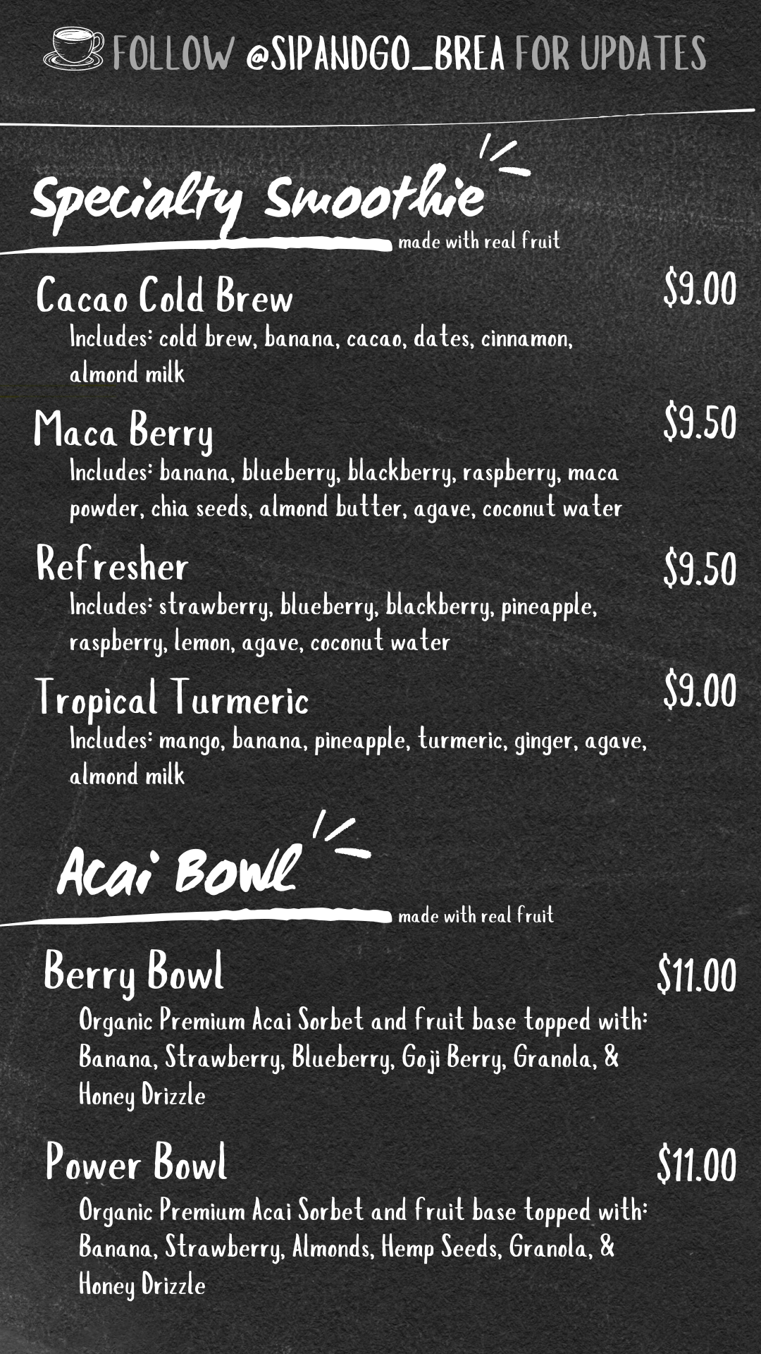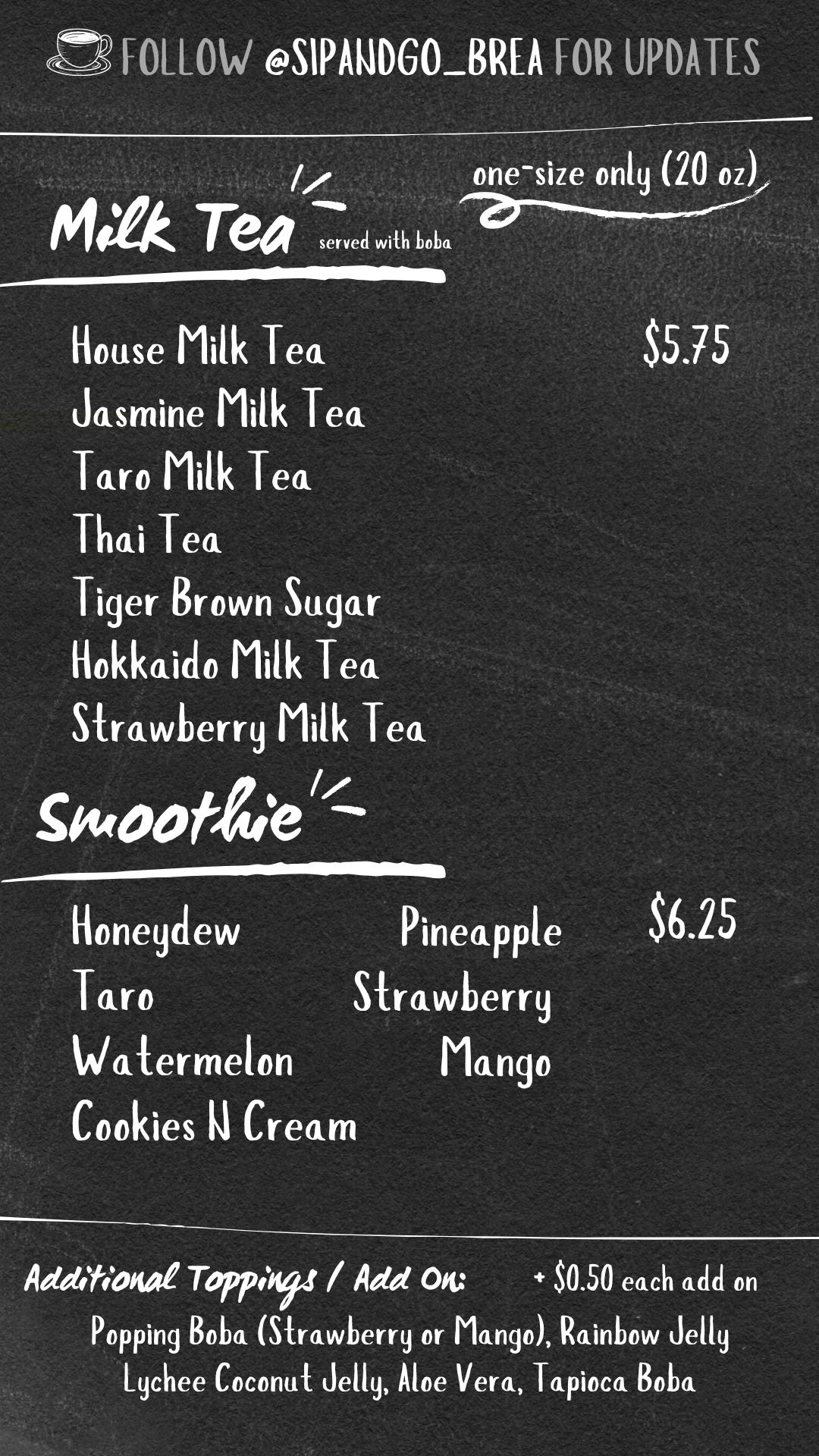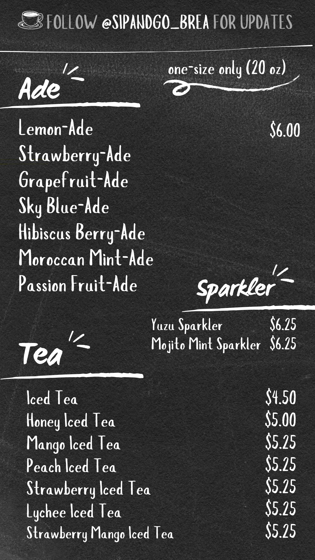 Sip & Go Menu