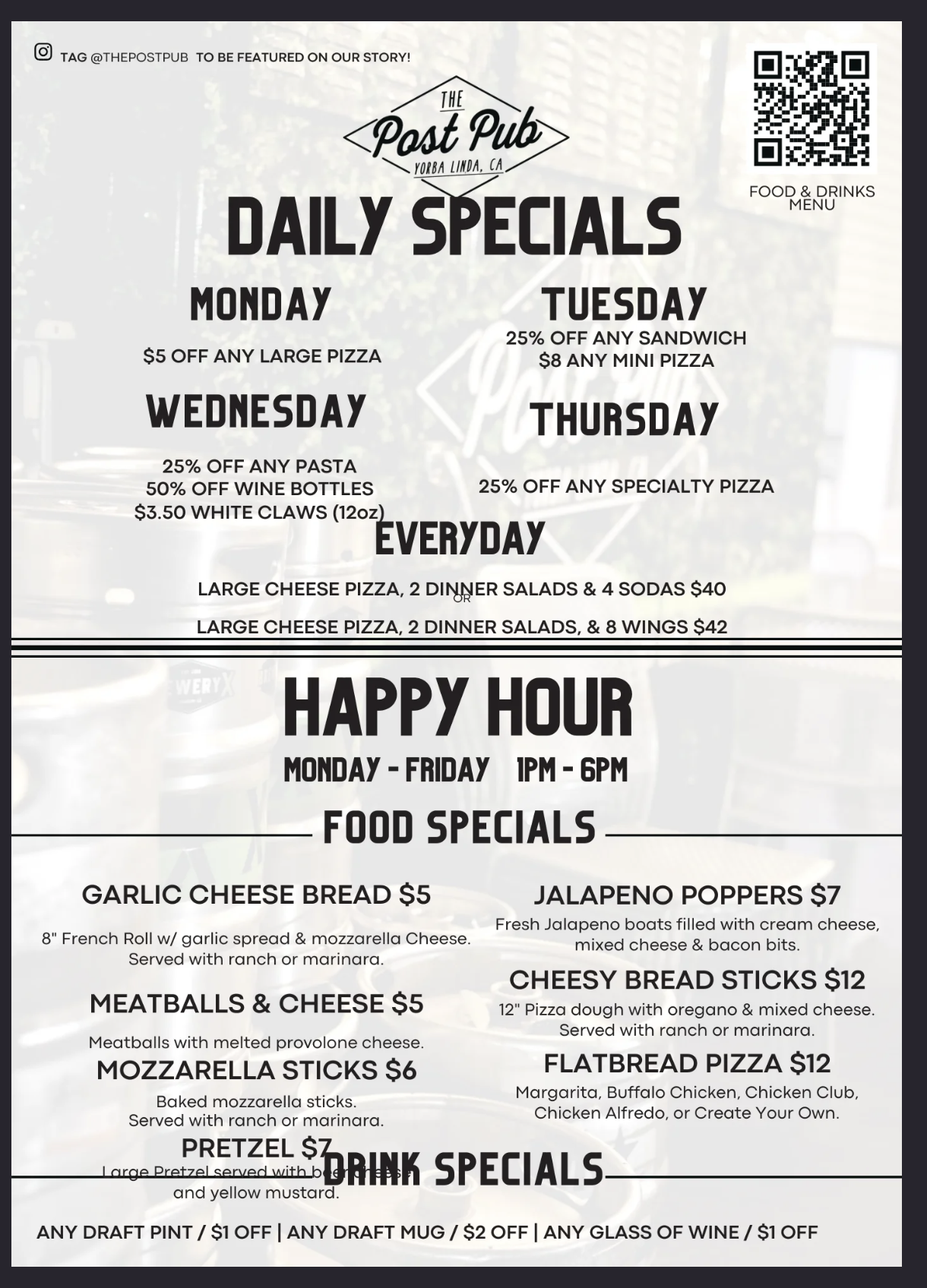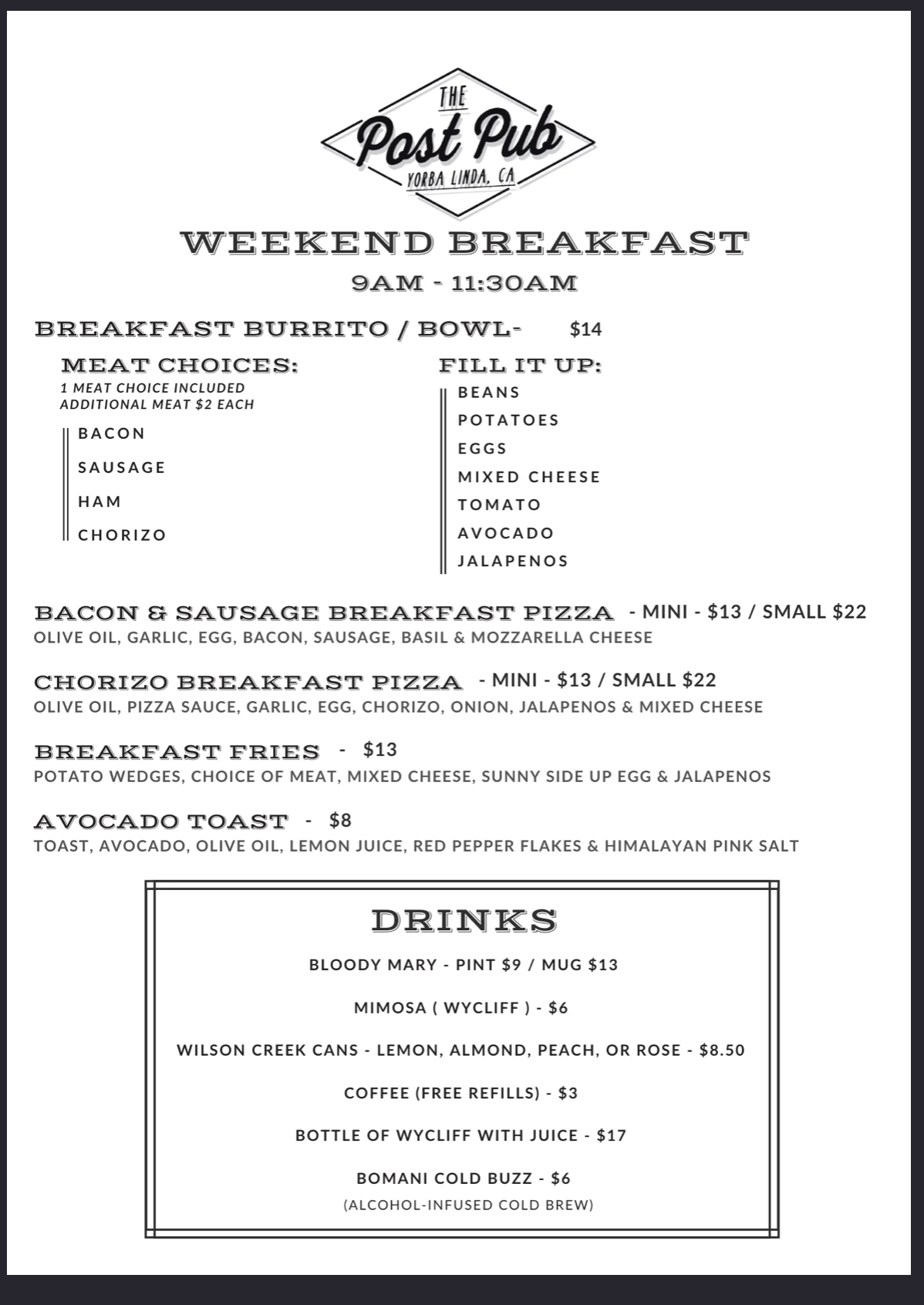 The Post Pub 5091 Richfield Rd, A, Yorba Linda Call for Reservations/Ordering (714) 993-9930 Go to our Website BEER MENU Just show your coupon to your server and $AVE!