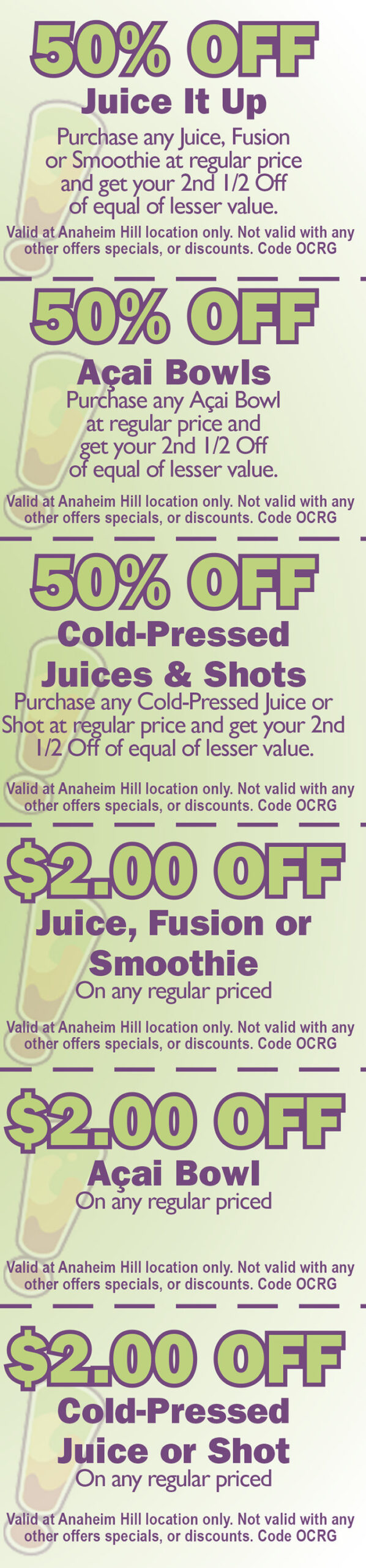 Juice It Up ANAHEIM HILLS 657-221-0730 5731 E. SANTA ANA CANYON RD Visit our Website ORDER JUICE IT UP ONLINE Just show your coupon to your server and $AVE!