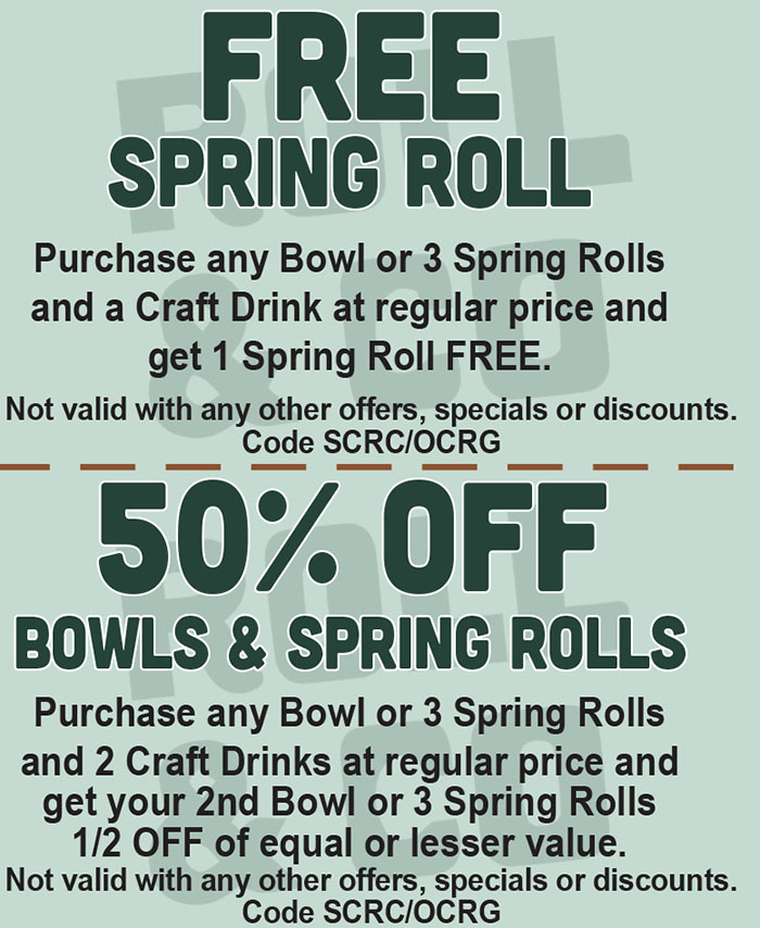 Roll & Co. 1065 Brea Mall #2162, Brea Call for Reservations/Ordering (657) 588-0550 Go to our Website ORDER ROLL & CO ONLINE Just show your coupon to your server and $AVE!