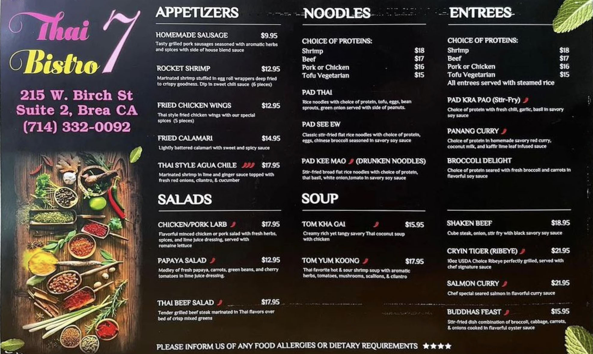 Thai 7 Bistro Menu