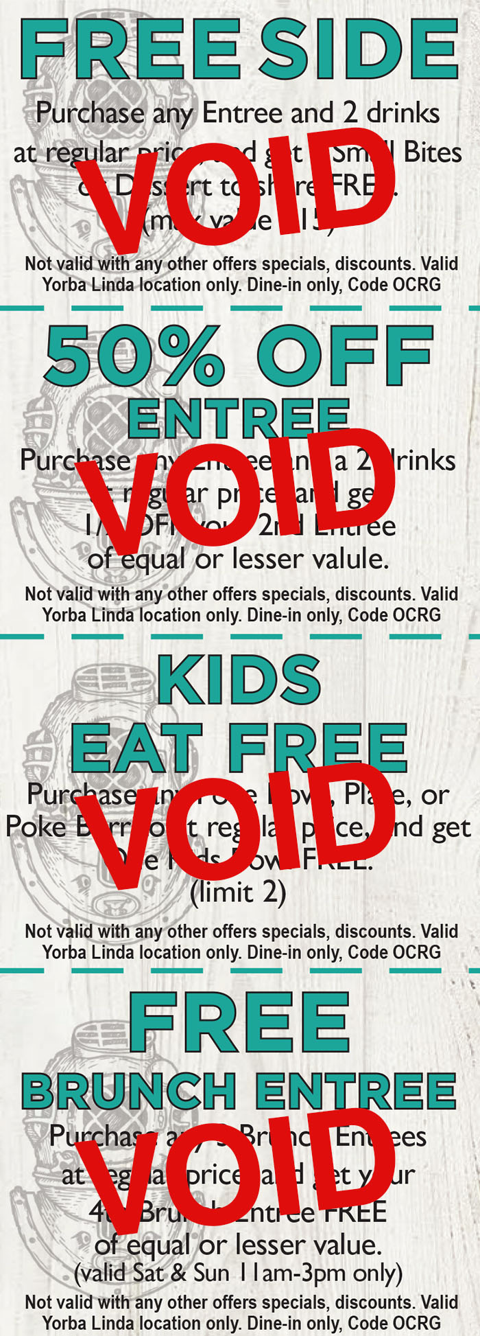 The Dive 20473 Yorba Linda Blvd, Yorba Linda Call for Reservations/Ordering (657) 363-8114 Go to our Website ORDER THE DIVE ONLINE RESERVATIONS FULL SERVICE CATERING Just show your coupon to your server and $AVE!
